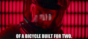 “The publics first exposure to physical modelling was when the film 2001: A space Odyssey was released (2001 1968). In the film HAL, the ship’s AI, is having his memory modules removed. He regresses to singing the song A Bicycle Built for Two. This is a reference to the first pioneering work on physically modelling of the human vocal tract in 1962. The software Max (by Cycling 74) is named after Max Mathews, a pioneer in computer music. In 1961 Max arranged a demonstration of technology that included a rendition of the song sung by a computer model of the vocal tract (Kelly 1962). The author Arthur C Clarke was present, and was so impressed that he included the song in the film 2001 to honour this achievement.”